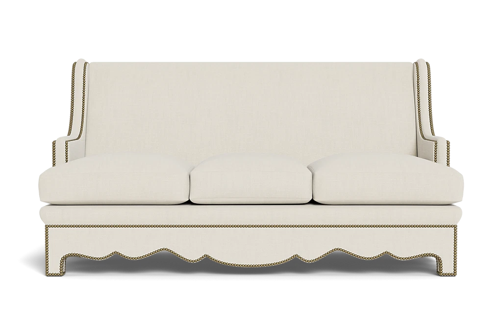 Our first sofa and certainly still a favorite! The fully upholstered tight-back has three loose seat cushions which are carefully proportioned for ultimate comfort. The whimsical curve of the apron is thoughtfully adorned with French nailheads - a stylish touch. The depth accommodates throw pillows and blankets making this sofa an inviting member of the family.
