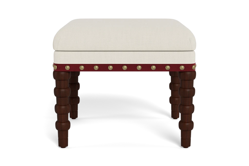 Stylish and versatile, this stool harmoniously gets to work as a little table or footrest and could be pulled up for a friend at a cozy drinks party. The handcrafted maple base showcases the graduated cuffed legs and the striking ruby red ribbon - a detail that really makes this hard working piece stand out.