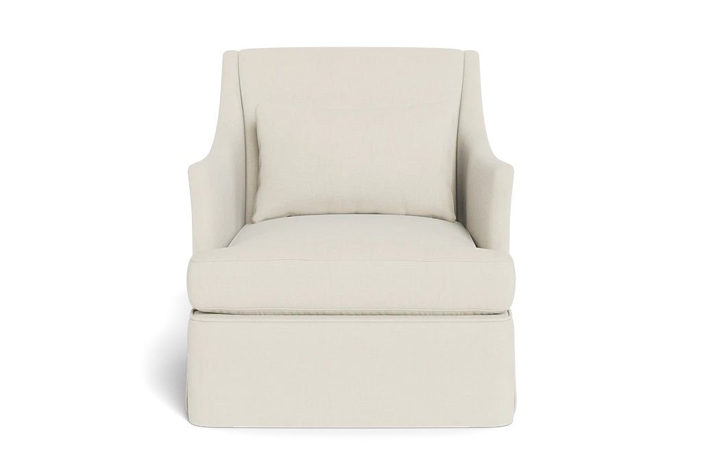 A streamlined armchair that melds the casual appearance of a slipcover with the reassuring elegance of tailored, fitted upholstery. Tight back and single seat cushion. Swivel option available.
