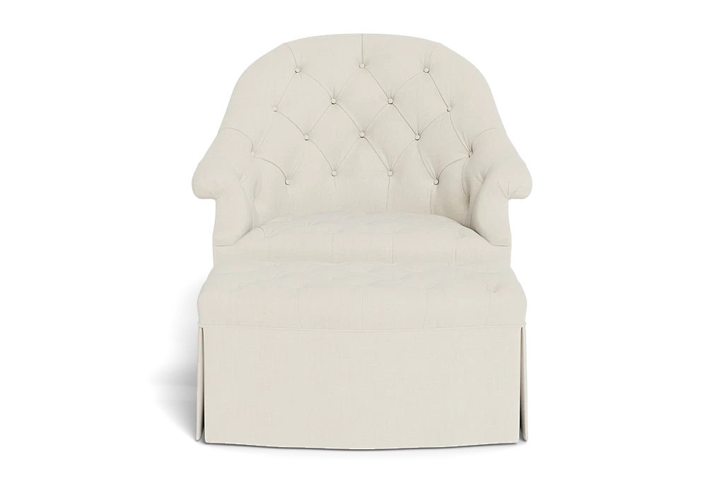 Bunny believes that every room should showcase a mix of upholstery with legs and with skirts to add texture and interest. So we've transformed our popular T42 Chair with an elegant skirt. As with our T42 Chair, you'll find it hard to resist its soft embrace, thanks to the curved barrel-shaped hardwood frame. The tufted upholstery is both soft and supportive.