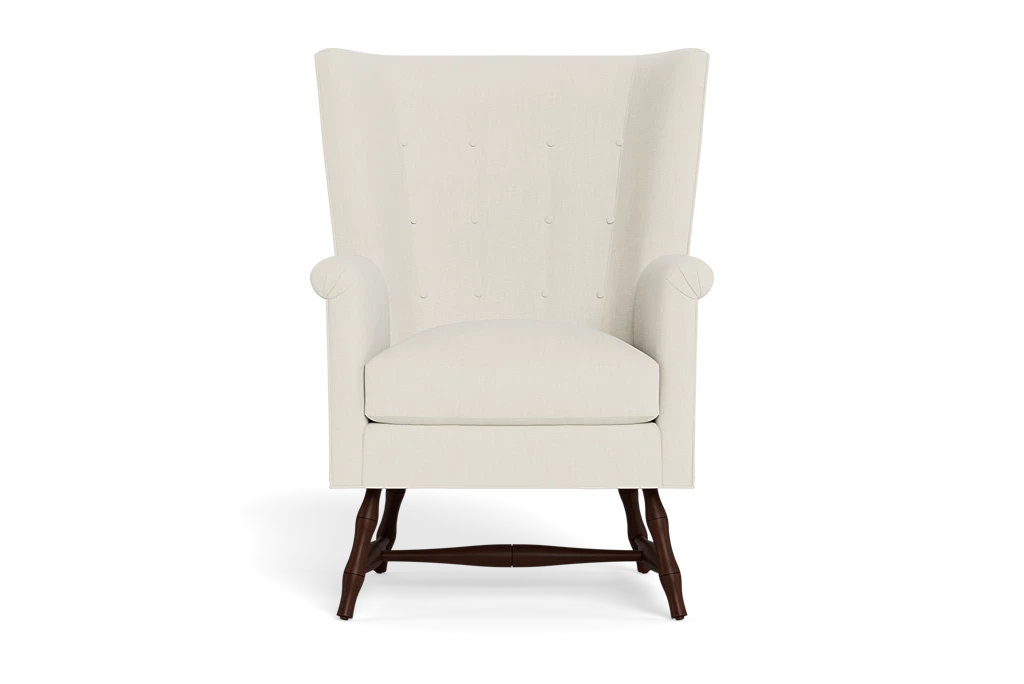 The wingback chair was originally designed for a 1700s home - the wings would shield the sitter from roaring hot fires as well as frosty drafts. Our version is loyal this watchful tradition - featuring a button-tufted back and loose seat cushion with one exception: the unexpected design detail of a traditional Windsor leg. Ideal to curl up in with a book and a steaming cup of tea.